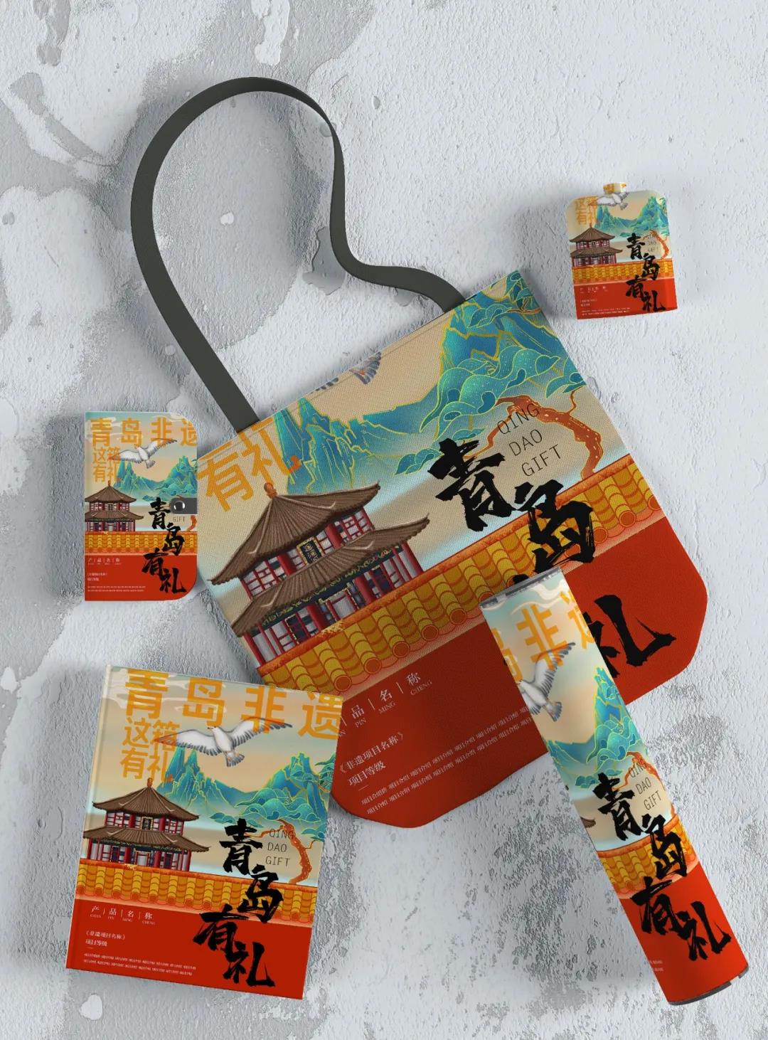 打造青岛有礼非遗伴手礼礼盒套装,以青岛栈桥、网红墙、崂山等一些能代表青岛城市印象的建筑作为设计元素,同时预留下非遗技艺和项目的介绍,能够推介城市、介绍产品,形成整体产品系列。