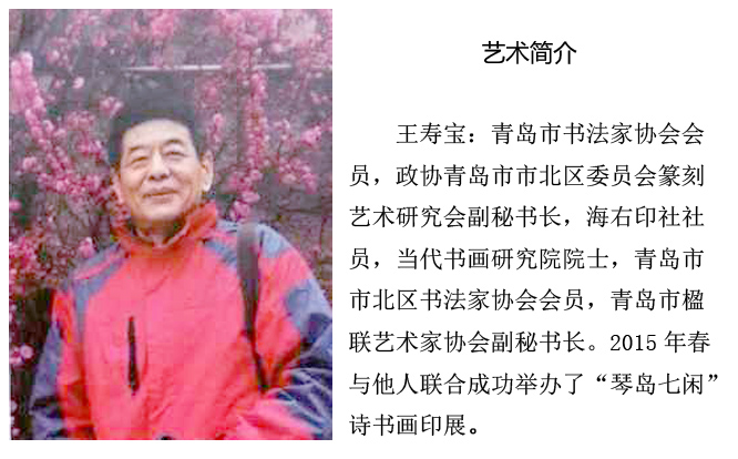 王寿宝艺术简介: 青岛市书法家协会会员,政协青岛市市北区委员会篆刻艺术研究会副秘书长,海右印社社员,当代书画研究院院士,青岛市 ...