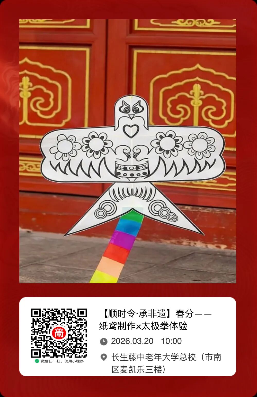 绘纸鸢乘风,练太极养阳。春分风起,纸鸢飞天;春日养阳,太极相伴。在沉浸式体验中解锁非遗技艺与时令养生。